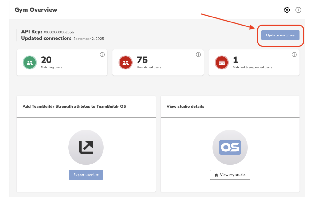 A: New members will need a profile in your TeamBuildr OS and TeamBuildr Strength accounts with matching email addresses. Once both profiles are created, you can match the profiles by clicking on “Update Matches” within your TeamBuildr OS Hub in your TeamBuildr Strength account.